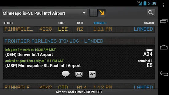 • Easily share flight info with friends and family via Twitter, Facebook, SMS and email
