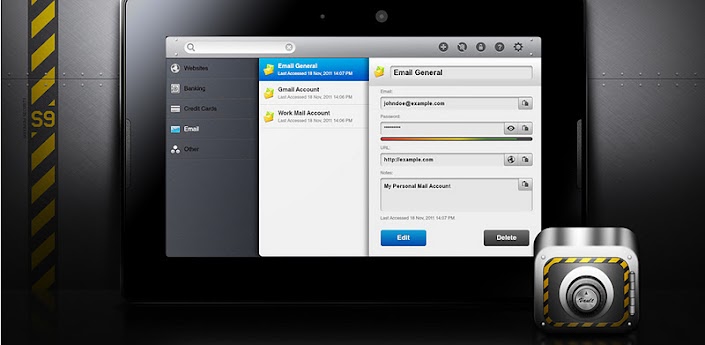 - One-stop password manager to store all your private information related to banking, credit cards, email and websites.